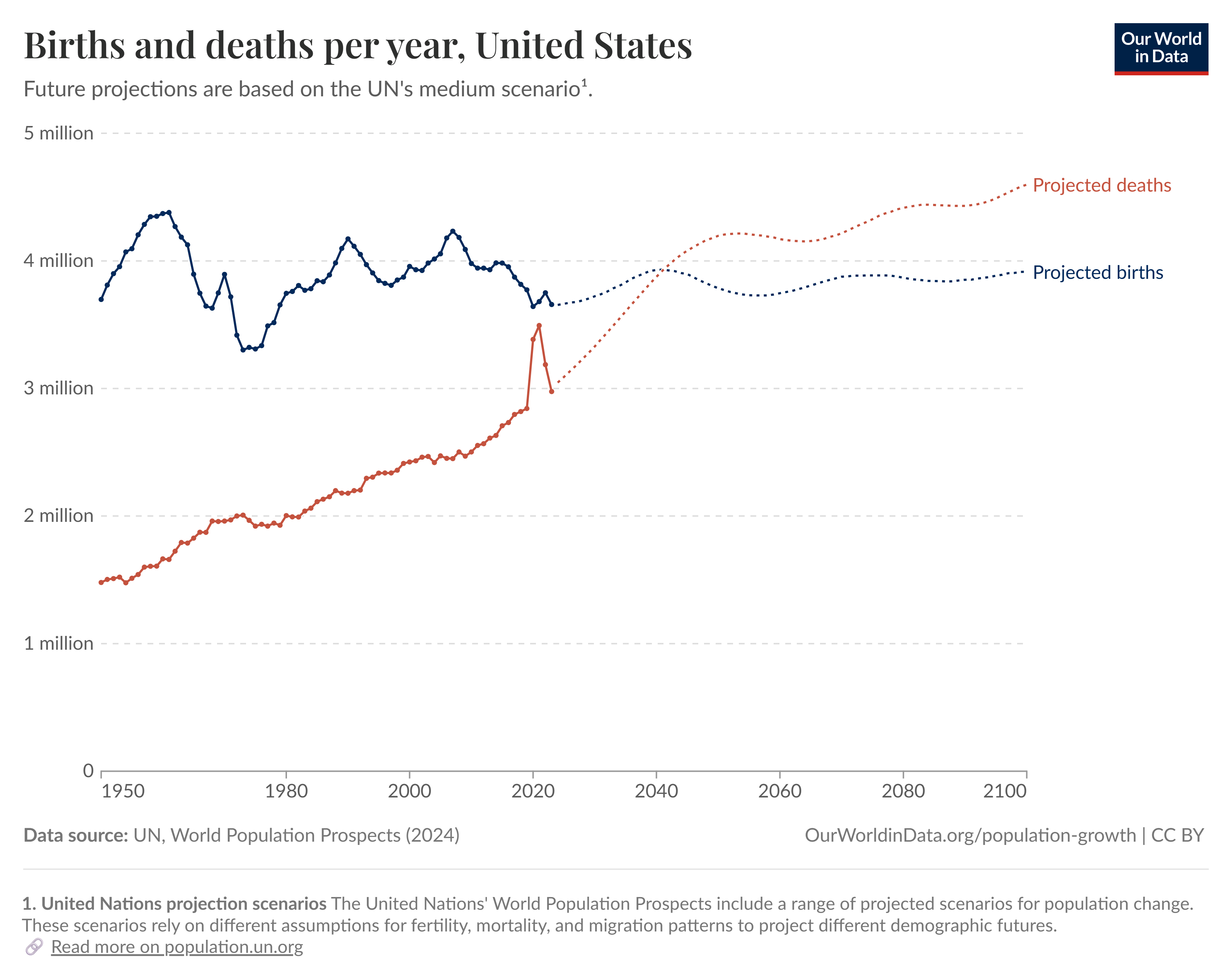 Our World in Data, 5 Jan 2023: How many people die and how many are born each year?