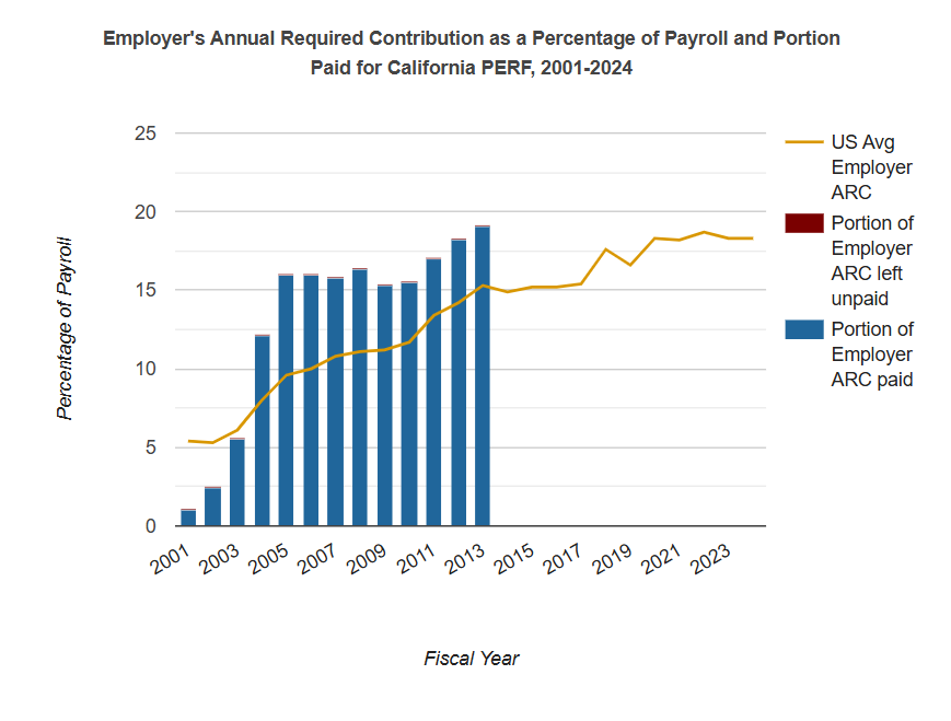 However. They’ve had almost 25 years of much higher contribution rates than that very small amount in 2001. And yet… Well, I may need to revisit CalPERS for its own post, because there are some nasty things brewing over there.
