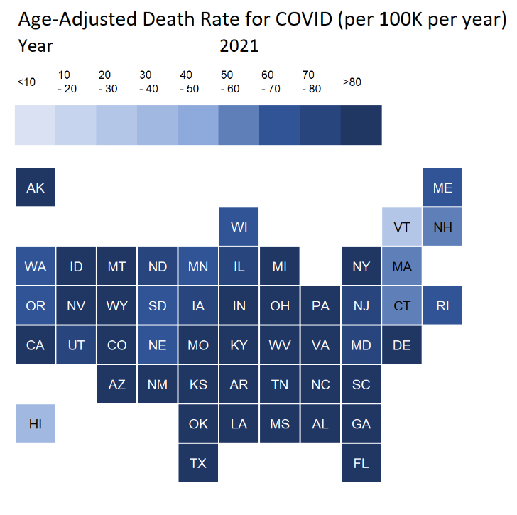 With COVID subsiding in 2022, you may see some states are laggards re: mortality. Those may be places that need particular focus with COVID care.