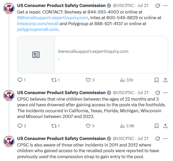 The CPSC (Consumer Product Safety Commission) is the government department involved in these product recalls, and they have some of the craziest tweets on X.