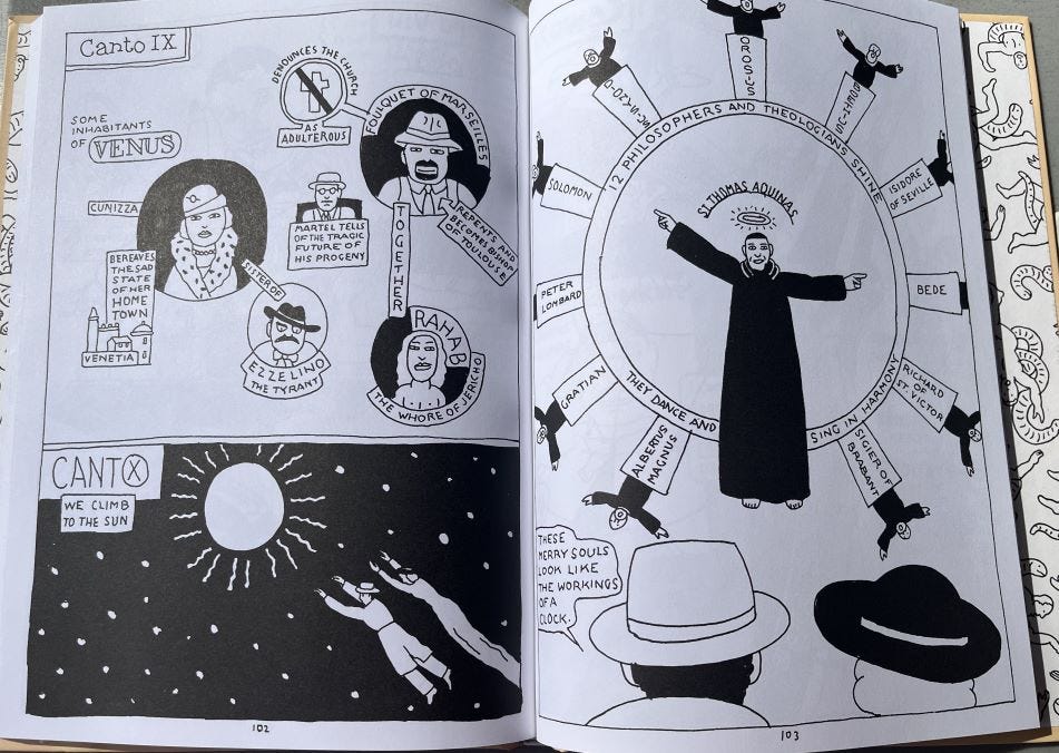 I like Chwast’s spare approach, as the art is not only in the actual drawings, and layout, but the selections he makes. There is a structure to the entire Commedia, and he touches on all the Cantos (which are SONGS) - he draws the structures of Hell (Inferno), Purgatory, and Paradise — and I wanted to show the page with Aquinas, because I looooove Aquinas.
