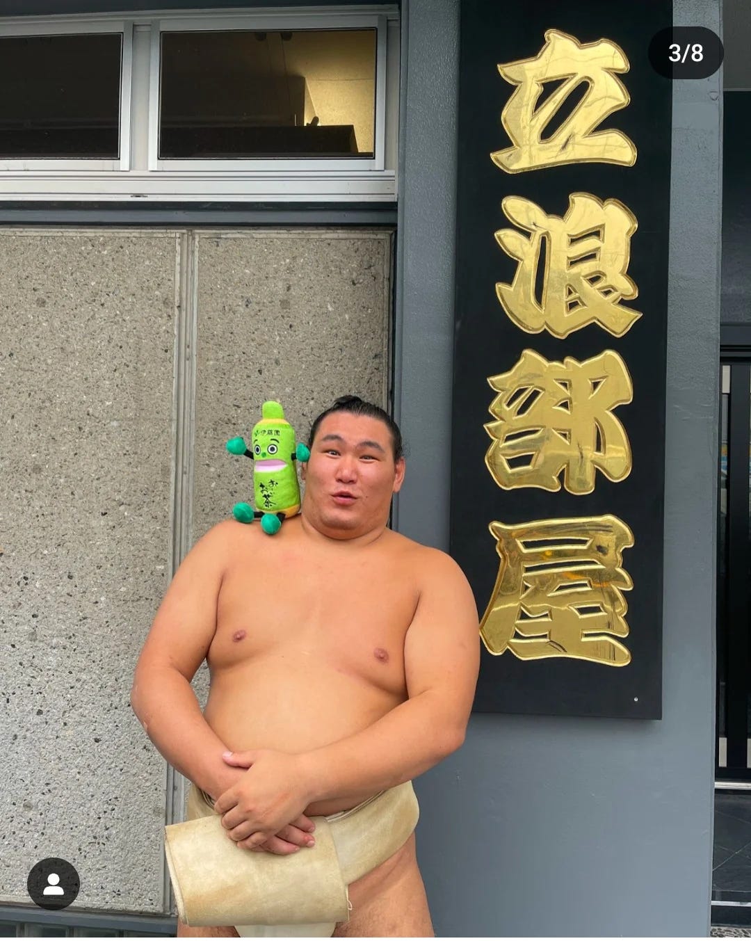 Okay, that was him goofing with the mascot of a green tea drink some time ago.