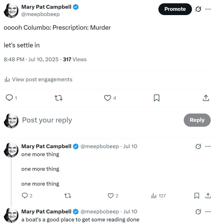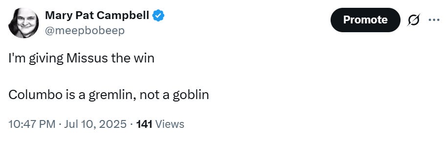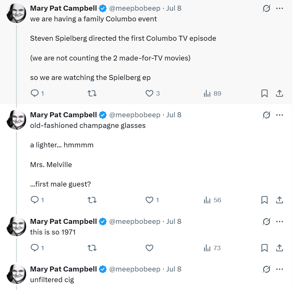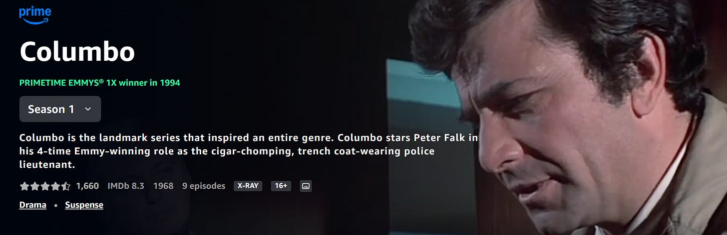 Some context: Missus is my middle child, and she has gotten into Columbo, as it’s currently on Prime: